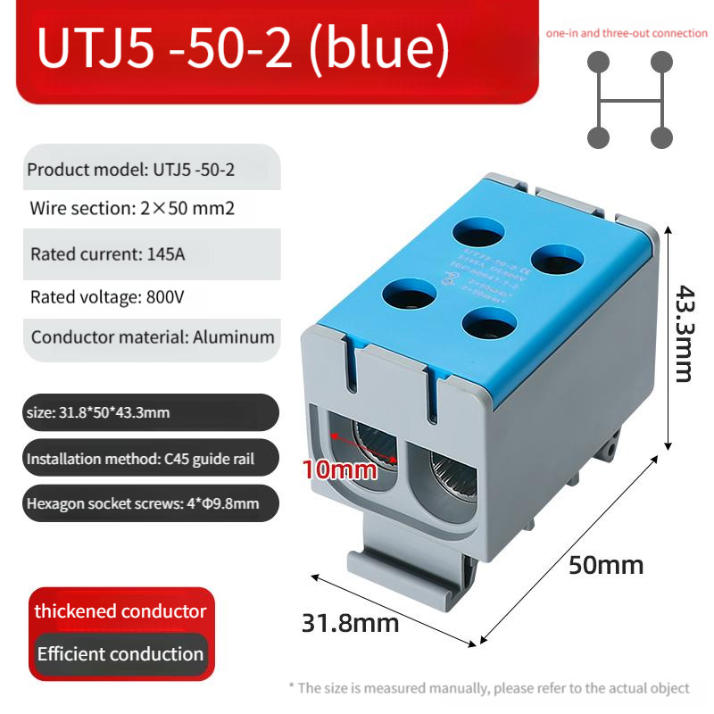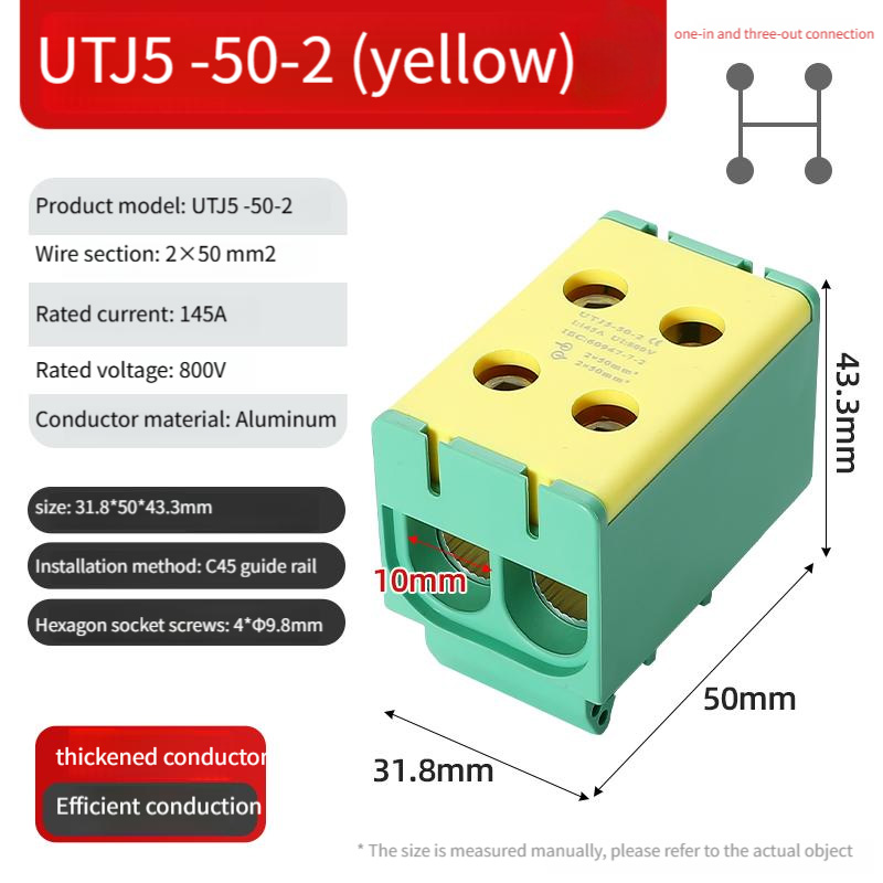 Thickened aluminum conductors offer lightweight, large cross-section, and excellent corrosion resistance. The new PA66 nylon can withstand high temperatures and pressures, maintaining excellent performance in a variety of harsh environments. With hexagonal screws, loosen the screws before wiring and tighten them after connecting the wires to complete the connection, ensuring a secure and durable connection.