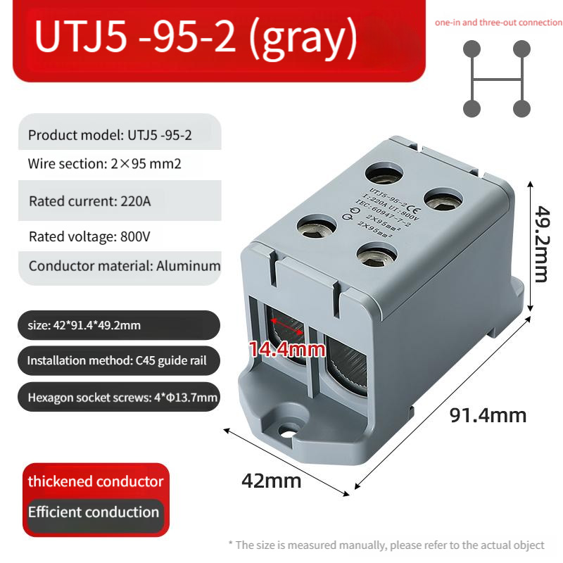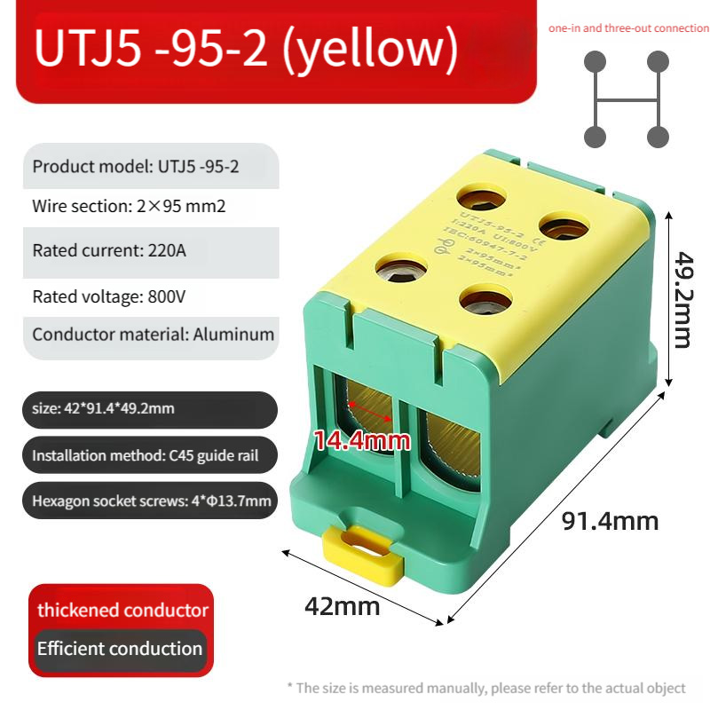 Thickened aluminum conductors offer lightweight, large cross-section, and excellent corrosion resistance. The new PA66 nylon can withstand high temperatures and pressures, maintaining excellent performance in a variety of harsh environments. With hexagonal screws, loosen the screws before wiring and tighten them after connecting the wires to complete the connection, ensuring a secure and durable connection.